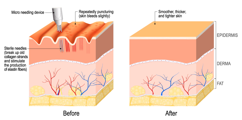 2 besedi: hialuronska kislina (HA). To je snov, ki jo vaše telo ustvari naravno, vendar se vaše zaloge s staranjem izpraznijo. Dobra novica je, da lahko ponovno nanesete bolj lokalno IF (in to je veliko, če) je formulacija sestavljena iz dovolj majhnih molekul, da prodrejo v plasti kože. Edinstvena formula HylaFuse™ , ki se uporablja v številnih Dp Dermaceuticals, je sestavljena iz 3 velikosti HA, ki prodrejo v globlje plasti kože. Med tretmajem Dermapen so igle potisnile te čudežne formule še globlje za pomlajevanje od znotraj. Microneedling tudi spodbuja naravno povečanje kolagena , elastina in pretoka krvi za mladosten sijaj tudi v 40-ih letih in več.
